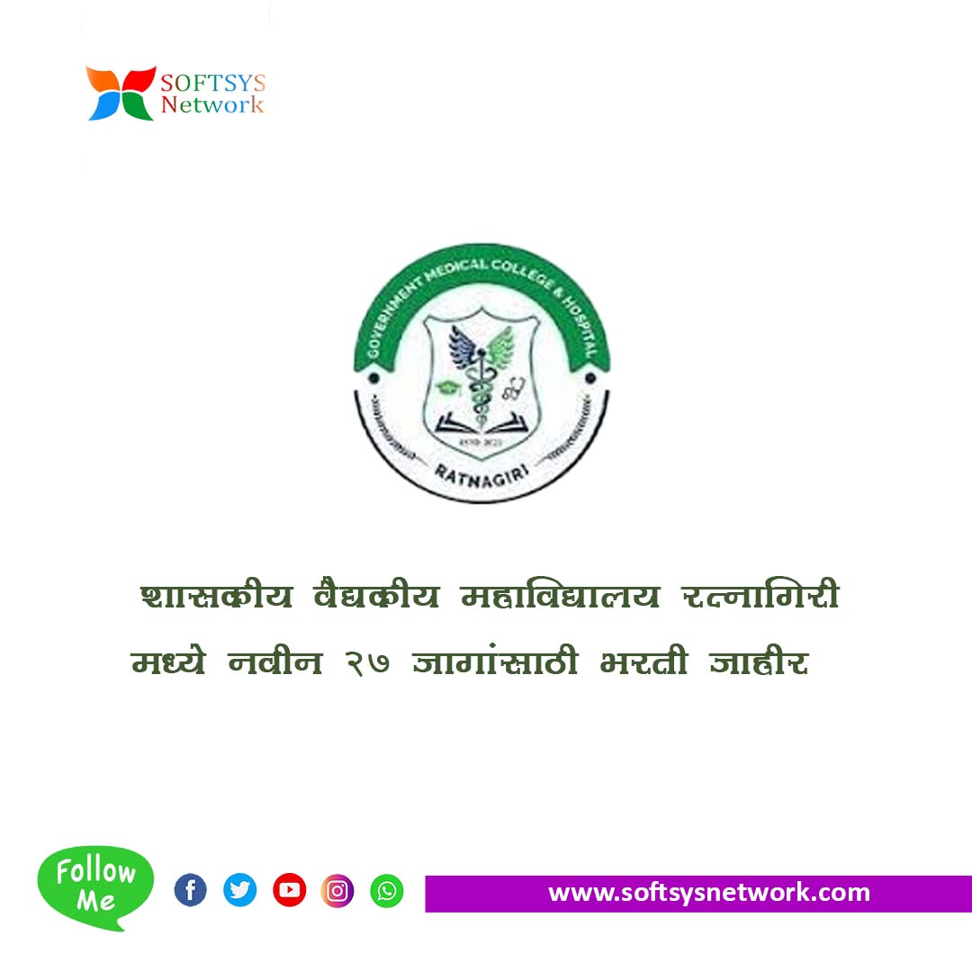 GMC Ratnagiri Bharti 2025: शासकीय वैद्यकीय महाविद्यालय रत्नागिरी मध्ये नवीन 27 जागांसाठी भरती जाहीर २०२५.