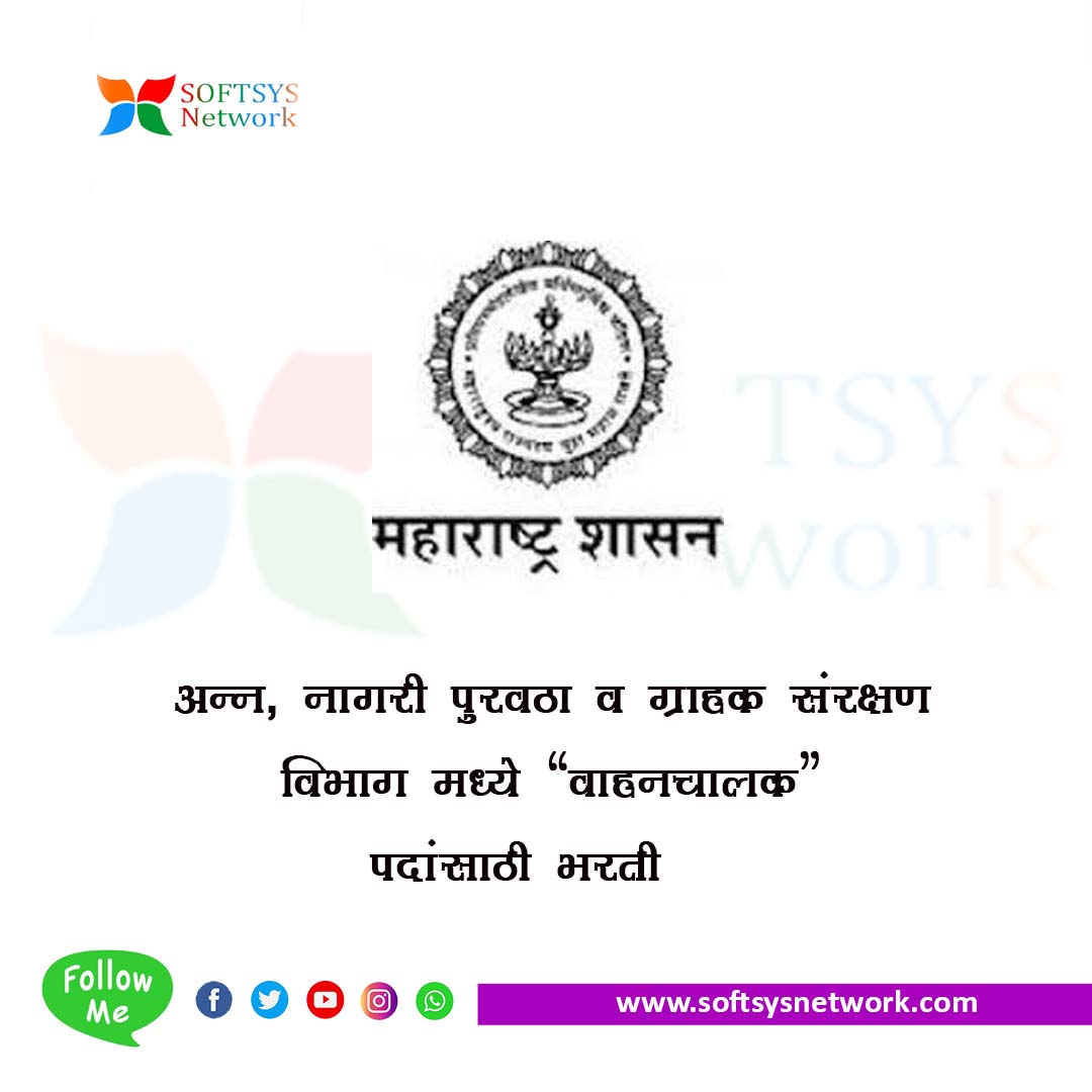 अन्न, नागरी पुरवठा व ग्राहक संरक्षण विभाग मध्ये “वाहनचालक” पदांसाठी भरती जाहिरात २०२५.