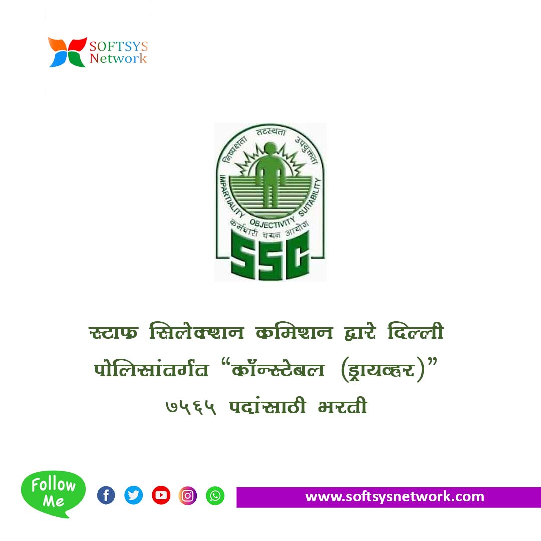 SSC Delhi Police Driver Bharti 2025: स्टाफ सिलेक्शन कमिशन द्वारे दिल्ली पोलिसांतर्गत “कॉन्स्टेबल (ड्रायव्हर)” ७५६५ पदांसाठी भरती – ऑनलाइन अर्ज करा